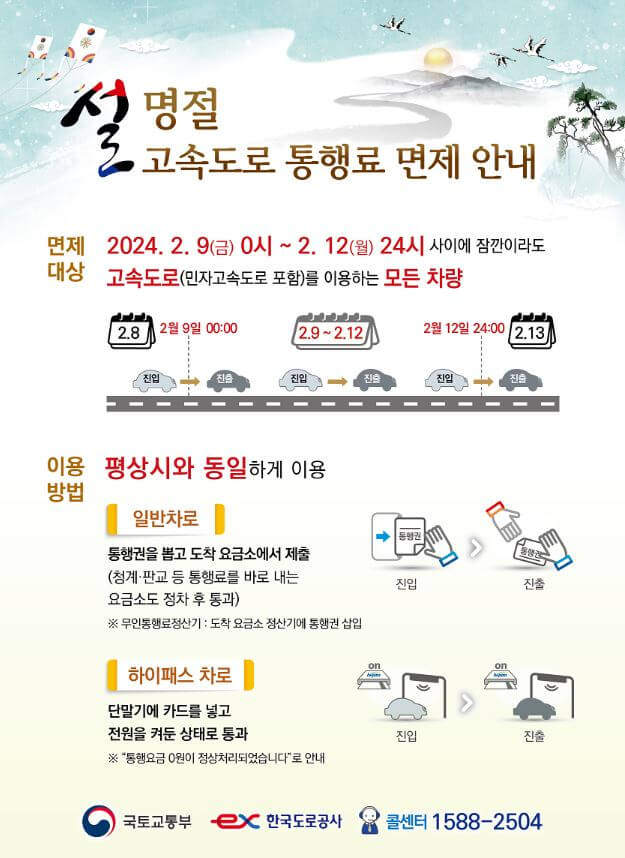 면제기간 : 2024년 2월 9일(금) 0시 ~ 2월 12일(월) 24시